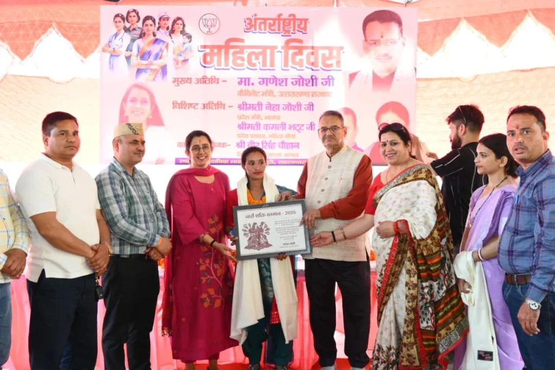 नारी शक्ति सम्मान से मातृशक्ति को सम्मानित करते कैबिनेट मंत्री गणेश जोशी